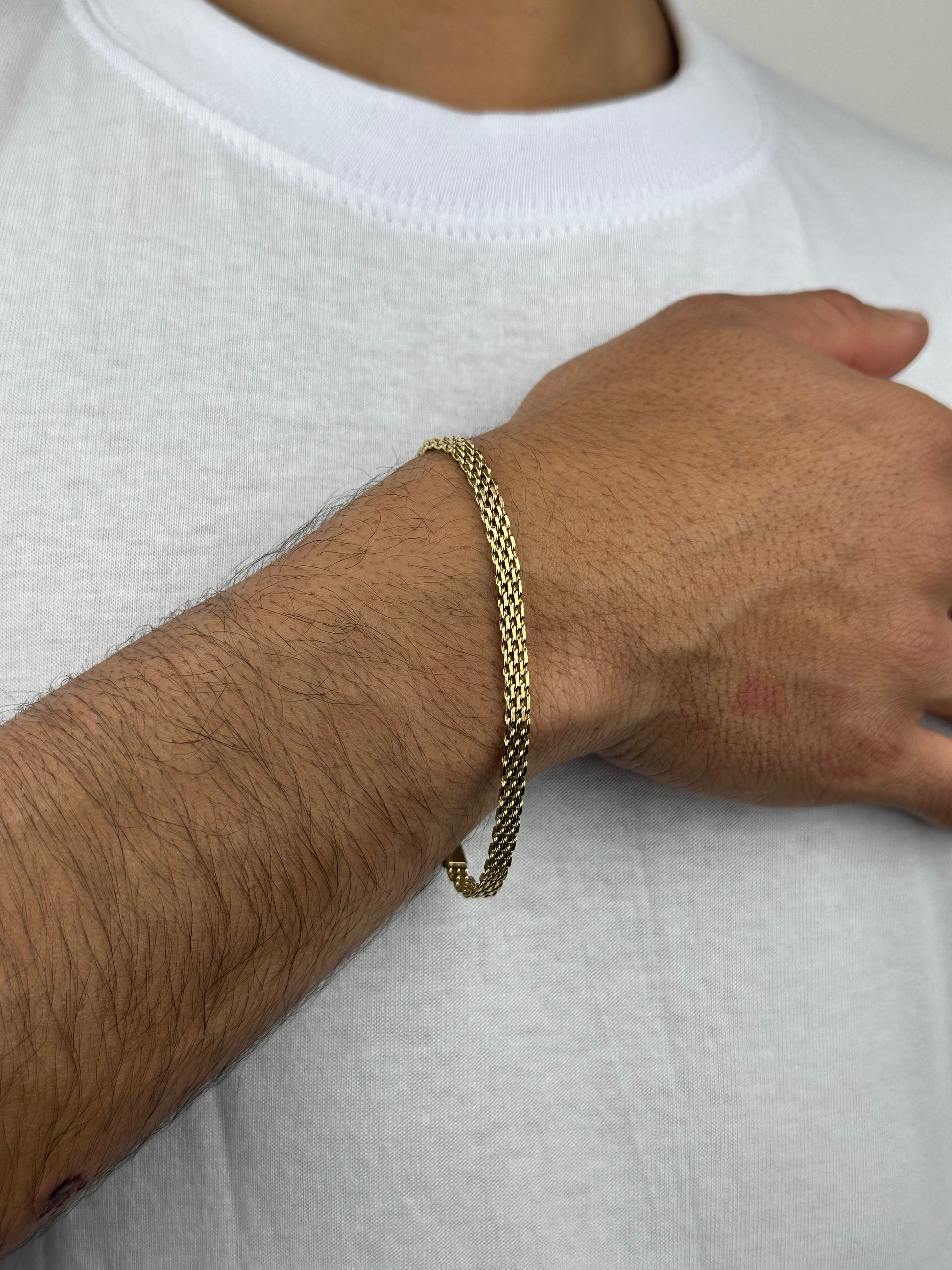 El oro laminado no es una simple joya, es una declaración de fuerza y distinción. Forjado con una capa sólida de oro de 18 quilates fusionada a alta presión sobre una base de titanio o acero de alta resistencia, crea un blindaje que preserva el color, el brillo y la textura del oro italiano, incluso con el paso de los años.